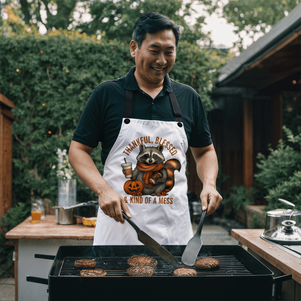🦝 Thankful, Blessed & Kind of a Mess Raccoon Apron